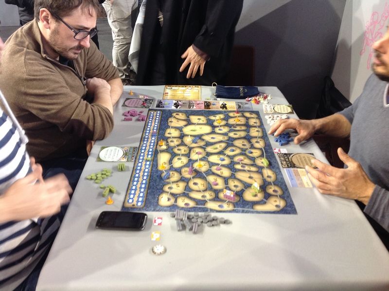 - Etant donné le nombre de prototypes, nous avons convenu de pousser le nombre de tests par Jury à la vitesse lumière ! Nous sommes donc passés des 6 parties obligatoires à 10 dans l'après-midi, en commençant avant que le salon ne débute, et en terminant à près de 22h pour moi... ouch ! Dur dur d'être un amateur de gros jeux :-)