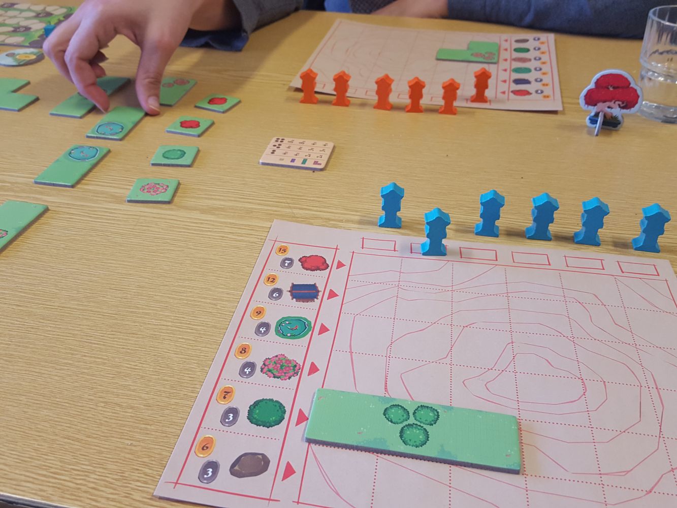 L’étape d’aménagement s’achève une fois que tous les joueurs ont placé des lanternes sur toutes les cases prévues ou ont passé leur tour.