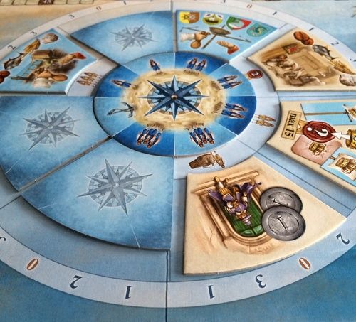 Tout d'abord, on place les tuiles actions aléatoirement sur la roue afin de pouvoir commencer le premier tour. Ensuite, le premier joueur va choisir quelle action il souhaite réaliser. Il reçoit un bonus pour avoir choisit l'action, puis réalise son action. Ensuite, les autres joueurs (dans l'ordre du tour) peuvent également effectuer cette action ou passer. Une fois que tous les joueurs ont joué, le pion premier joueur passe au joueur suivant, qui va choisir une nouvelle action. Les phases d'actions s'enchainent jusqu'à ce que 7 des 8 actions disponibles soient réalisées. A ce moment là, le tour est terminé et on passe au suivant. Les tuiles actions sont remélangées et replacées sur la roue. A la fin du cinquième tour, on effectue le scoring final et la partie se termine.