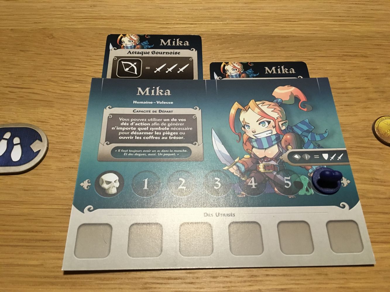 Dans la phase “Héros”, le joueur va commencer par lancer les dés d’Actions. Après ce lancé, le joueur pourra décider de relancer une seule fois les dés qu’il choisi. Ensuite, le joueur pourra effectuer ces actions en fonctions des dés qu’il dépensera. Et pour finir, le joueur pourra récupérer un butin en fonction du nombre de dés non utilisés. Le joueur reçoit 1 pièce d’or par dés non dépensés.