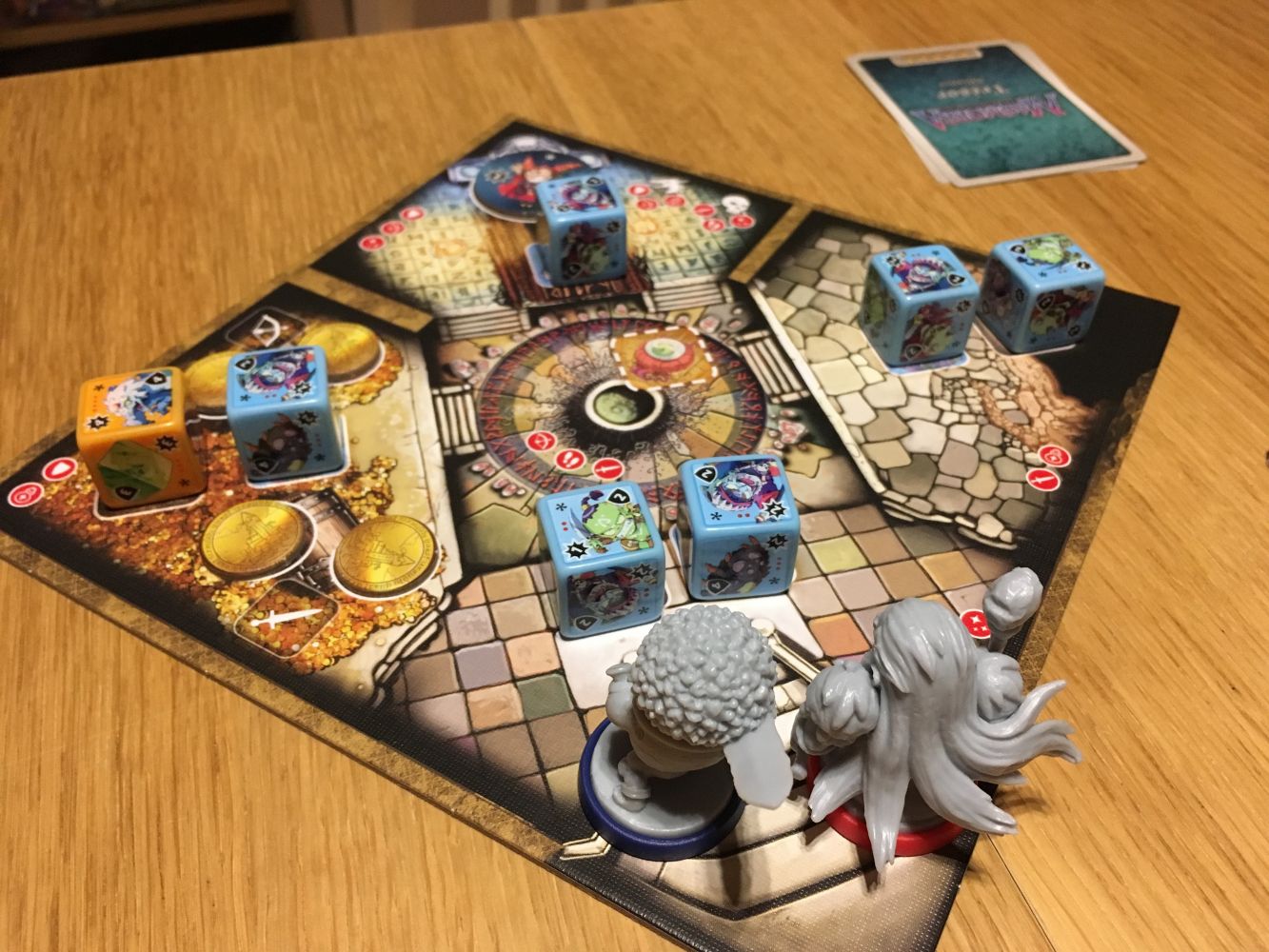 Bien entendu, c’est un jeu de dés et de pioches, si vous êtes entièrement allergique à ce genre de chose, passez votre tour. Vous devrez vous adapter à votre jet de dés pour vos actions, vous devrez affronter des monstres même si c’est pas celui là que vous vouliez voir et vous devrez faire avec l'aléatoire de la pioche des salles qui peut vous emmener dans un pièges et vous faire très mal. Mais personnellement, je trouve que ça colle très bien à ce type de jeu.
