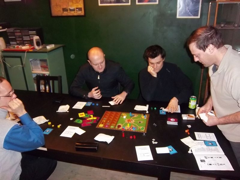 Monsieur Clément, un auteur en herbe, est venu avec un prototype dans notre bon local, afin de nous inviter à fabriquer (tenez-vous bien) de la gnole, du vin, et de la bière ! Ça tombe bien, le local associatif est une ancienne cave. Avec un thème pareil, vous pensez bien que messieurs Vincent, Fabrice et Xavier ont immédiatement sortis leurs choppes…quand à moi, chacun sait que je bois que de l’eau (c’est moi qui fait le compte-rendu, alors j’écris ce que je veux d’abord…).