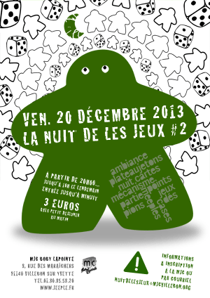 Pour plus d'informations, une adresse mail : nuitdelesjeux@mjcvillebon.org ou un site web : http://www.jeeple.fr
