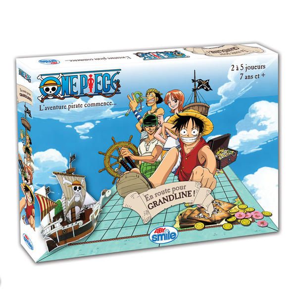Je pourrais vous laisser retourner à votre vie normale dès que j'aurais précisé que la boite s'appelle "One piece, en route pour grand line" et qu'elle renferme tout un tas de petites choses, tel qu'un vrai bateau (en carton), des lanceurs (pour lancer les pions dans le bateau en carton), mais aussi des vrais pièces (d'or), des cartes (actions), des îles (en relief), un sac (en tissu), une roulette (d'exploration), une règle (du jeu)... Le tout est fabriqué en France. Si. Bref, du tout joli matériel qui saura certainement ravir petits et grands, fans du manga ou simples adeptes de piraterie familiale.