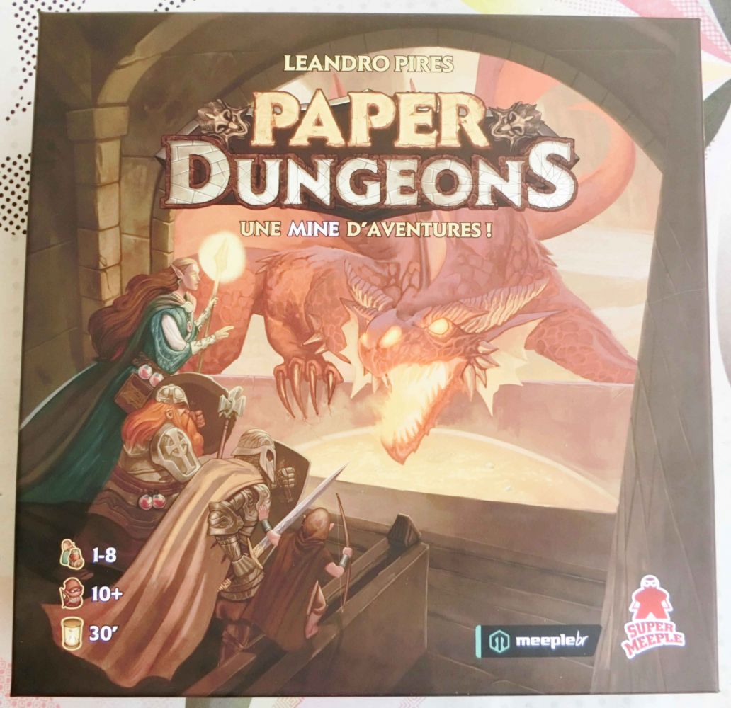 Paper Dungeons est un jeu de Roll and Write pour 1 à 8 joueurs de 10 ans et plus pour des parties de 30 à 60 min. c'est un jeu de Leandro Pires avec aux illustratations Dan Ramos, ils ont déjà travaillé ensemble en 2017 sur le jeu Tsukiji.