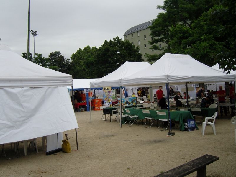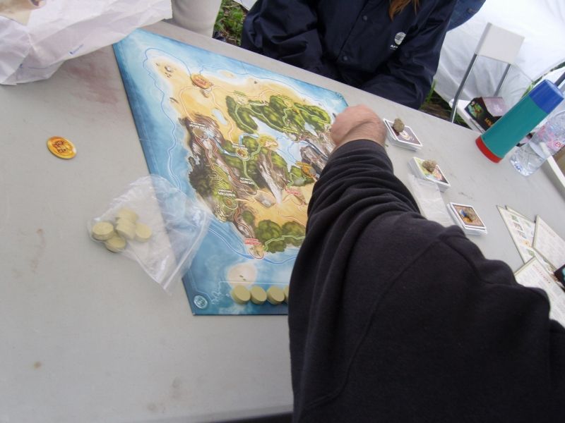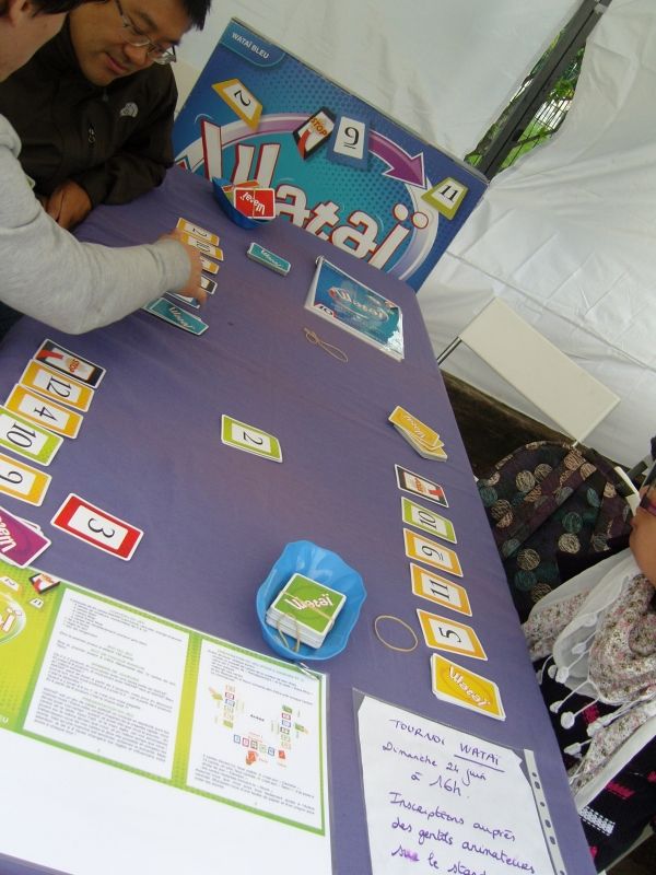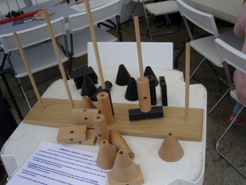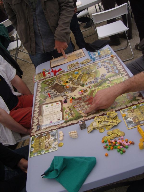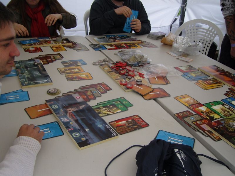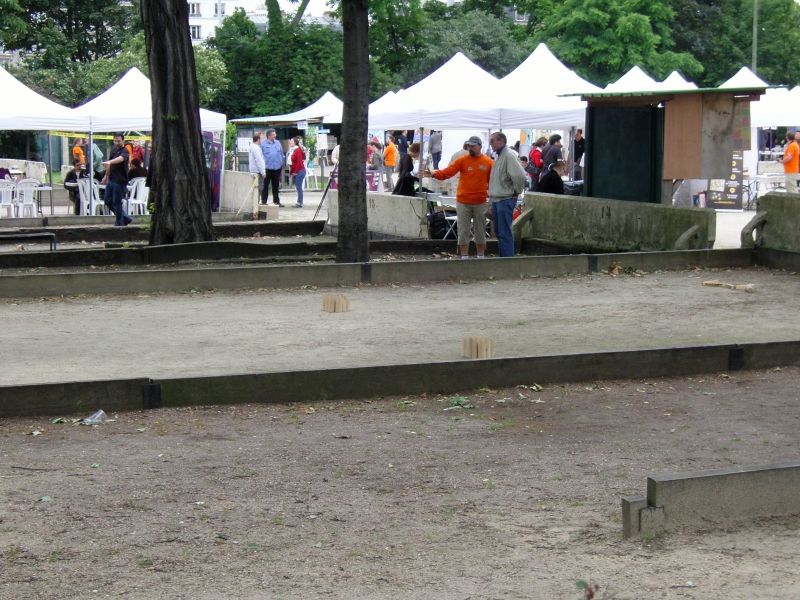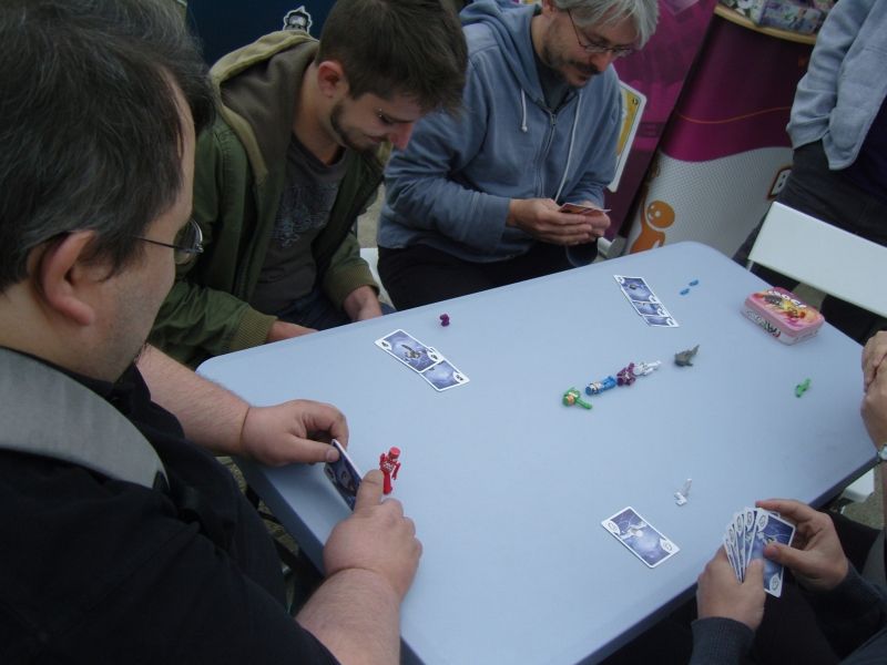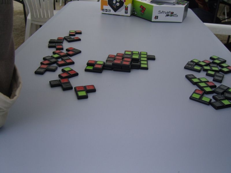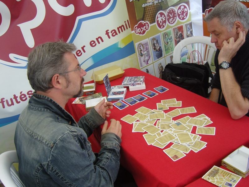 Bref, on se contentera du dimanche, jour où il fit bien moins beau temps. Moins de monde donc, mais juste ce qu'il faut pour voir deux trois badauds se promener et les autres attablés pour jouer : aucune table sans joueur, mais aucun frustré de ne pouvoir jouer.
