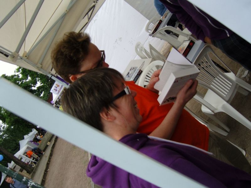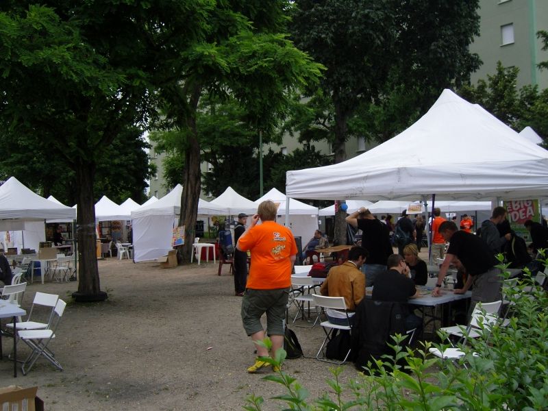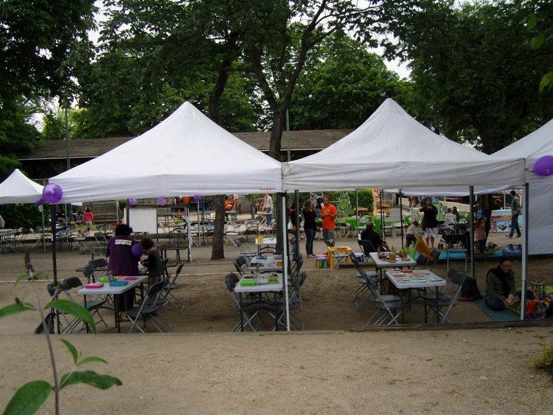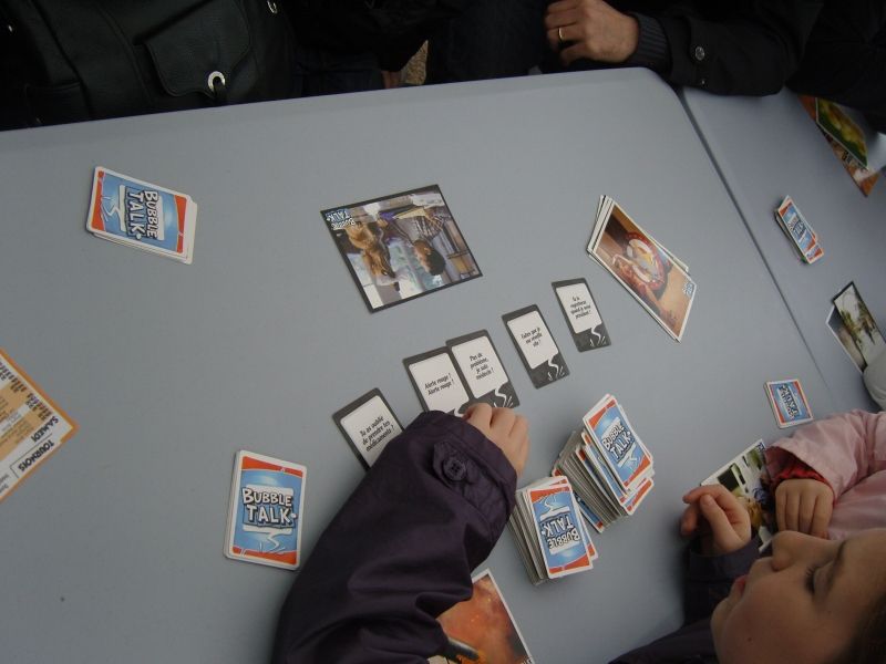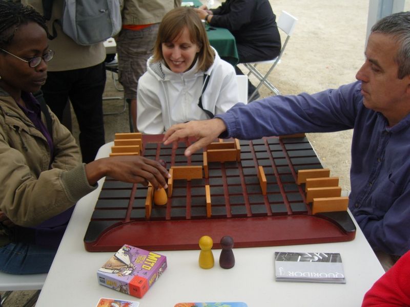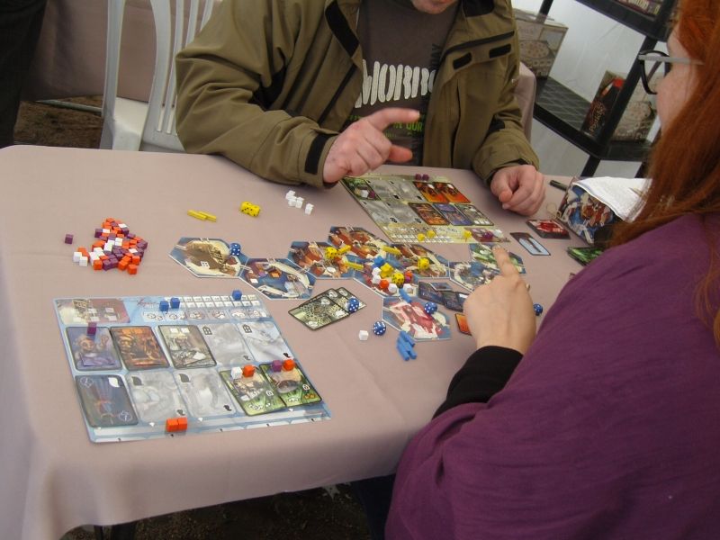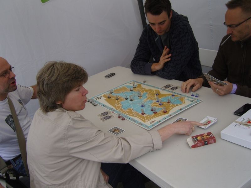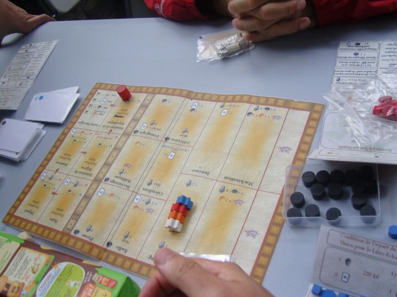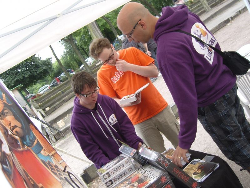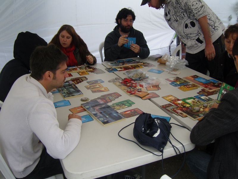 Bref, on se contentera du dimanche, jour où il fit bien moins beau temps. Moins de monde donc, mais juste ce qu'il faut pour voir deux trois badauds se promener et les autres attablés pour jouer : aucune table sans joueur, mais aucun frustré de ne pouvoir jouer.