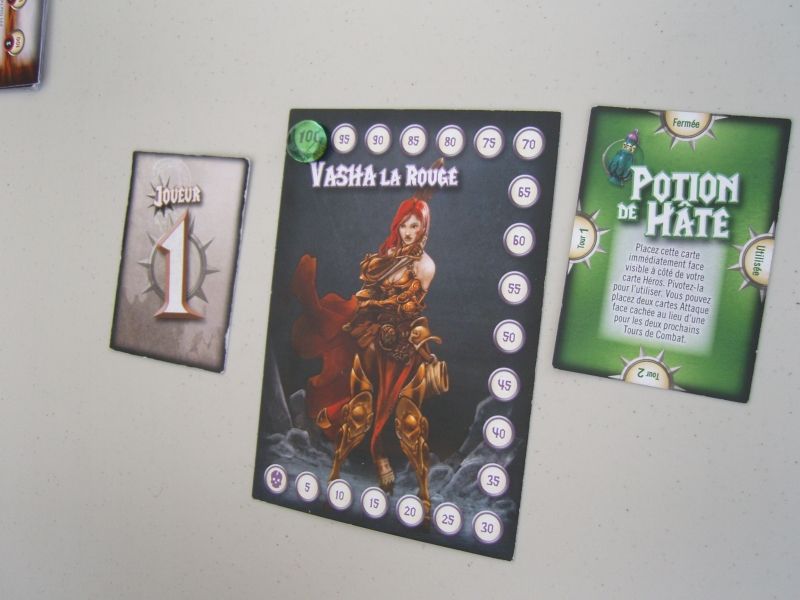 Le gros principe du jeu revient à ce que chacun choisit en secret la carte dégâts qu'il va jouer. Celui qui tape le plus fort frappe en premier et ainsi de suite. Mais à vouloir ne pas taper fort, on laisse l'opportunité au monstre de tenir un tour de plus et de nous cogner encore dessus. Et comme la partie cesse après X vilains dégommés...