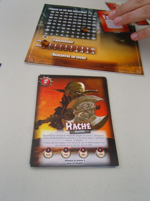 Le texte donne l'effet spécial du méchant et les chiffres indiquent le nombre de Pv qu'il possède selon le nombre de joueurs ayant débuté la partie.