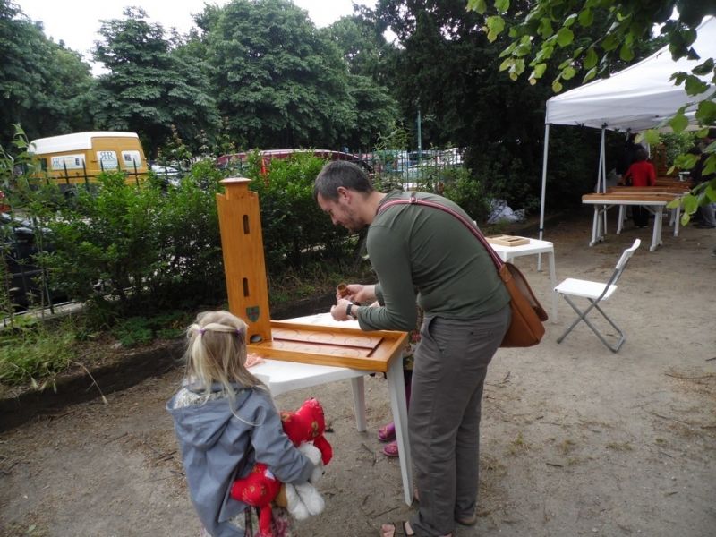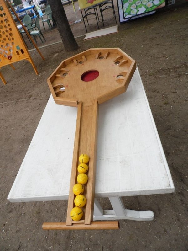 Depuis l'entrée du festival, toute la partie gauche est consacrée aux jeux pour les enfants pour une partie, mais contient surtout un espace important dédié aux jeux en bois.