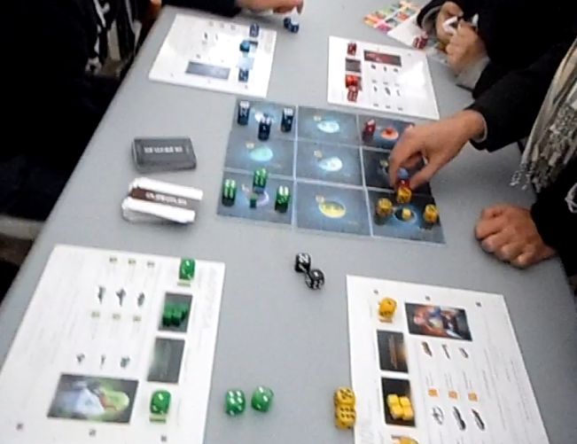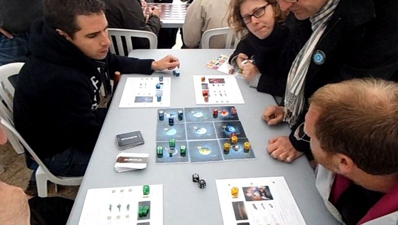 Vous verrez sur cette partie de notre reportage, quelques-uns des jeux qui étaient mis en avant sur les tables des éditeurs, mais vous vous doutez que, si le choix semblait déjà important, il l'était encore davantage : les choix étaient bien plus grands, notamment sur les stands de Asmodée (où j'ai joué une énième partie de l'excellent Augustus -et un grand "merci" aux animateurs, très sympathiques), Iello, Gigamic, Blackrock et Filosofia...