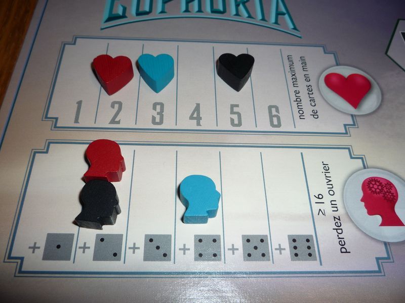 Euphoria est un jeu de pose d'ouvriers, qui sont représentés par des dés et qui va demander d'avancer par étapes. Vous voulez faire quelque chose, mais pour ce faire vous devrez passer plusieurs étapes dans un certain ordre. Mais voyons voir ça plus en détails...
