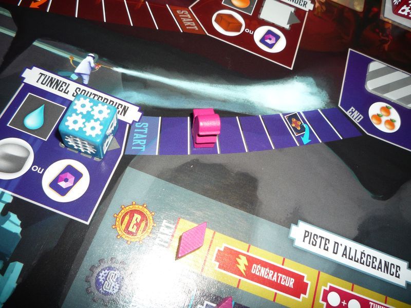 Vous pourrez creuser des tunnels, à l'aide d'un petit mineur. Cette action, qui a un coup en ressources, permet de récupérer un minerai et de faire progresser le pion mineur. L'intérêt est de permettre l'activation d'un spécialiste correspondant à la faction du tunnel, mais également de débloquer une action spéciale qui permet de faire le plein de ressources, mais qui n'est disponible qu'aux joueurs ayant au moins un spécialiste de cette faction. De plus, lorsqu'un joueur place son dé sur ce type d'action, il chasse le dé déjà présent, donc son propriétaire doit le relancer et redéterminer sa lucidité.