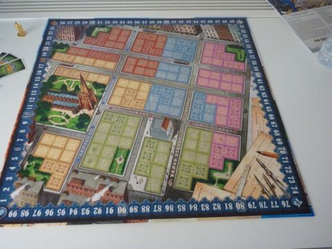 On a également de nombreux bâtiments qui rapporteront différentes valeurs de points de victoire en fonction de leur taille et de leur forme (sortes de pièces de tetris).