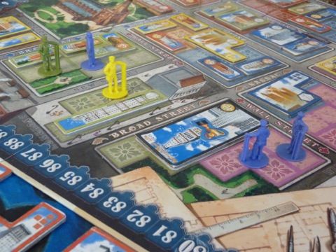 - Acquérir un nouveau titre de propriété d'une taille (2 ou 3 cases) et d'une couleur (parmi 5) qui nous permettra de poser un de nos pions sur le plateau à l'un des emplacements correspondants ET réaliser une construction sur une de nos propriétés.