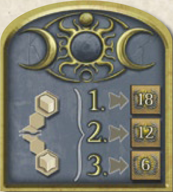 * Les Fées de Glace : leur capacité de départ vous permet de démarrer la partie avec une tuile “Faveur” de votre choix. La Forteresse, elle, vous permet, lorsque vous passez, de marquer 3 points de victoires pour chacun de vos temples placés sur le plateau.