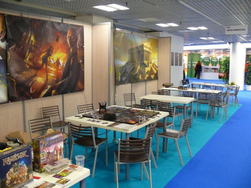Cette année, Repos Prod n'était pas simplement venu avec un stand, mais avec une exposition complète sur l'avènement au rang de jeu culte de 7 Wonders !