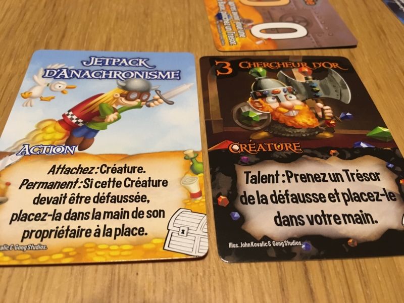 Autre petite déception sur le jeu… L'humour… Je ne le retrouve pas aussi présent que dans Munchkin. Oui c'est marrant mais sans plus… Autant je m'éclate dans Munchkin, même si la partie est longue, autant là je fini par avoir hâte que ça se termine. Maintenant, le nombre de cartes est nettement moins grand que celui de Munchkin, donc c'est un fait, c'est plus difficile de faire des tonnes de délire.