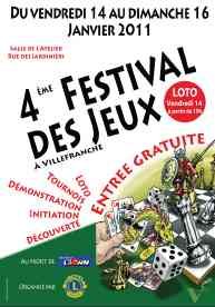 Du 14 au 16 Janvier 2011 aura lieu le Quatrième Festival des jeux organisé par le Lion's club de Villefranche-sur-Saône, en partenariat avec les association ludiques locales.