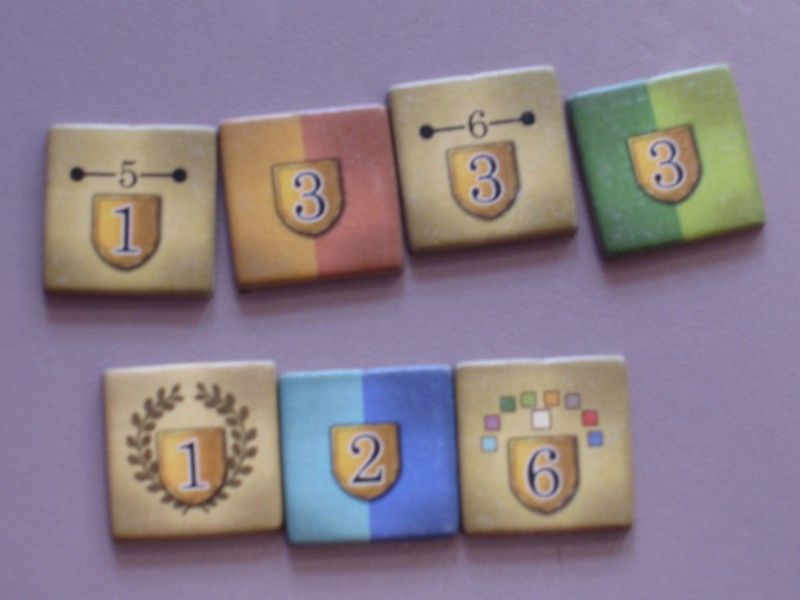 Et les différentes tuiles avec points bonus que j'ai pu récupérer.