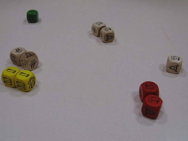 Encore des dès, des blancs, des jaunes, des rouges et des verts....
