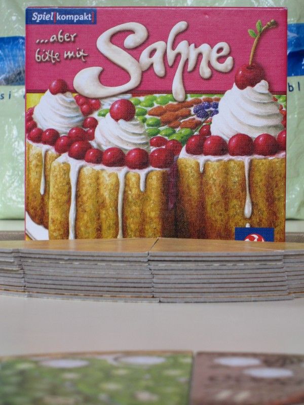 Une vue rapprochée sur la boîte et une partie du matériel de jeu.