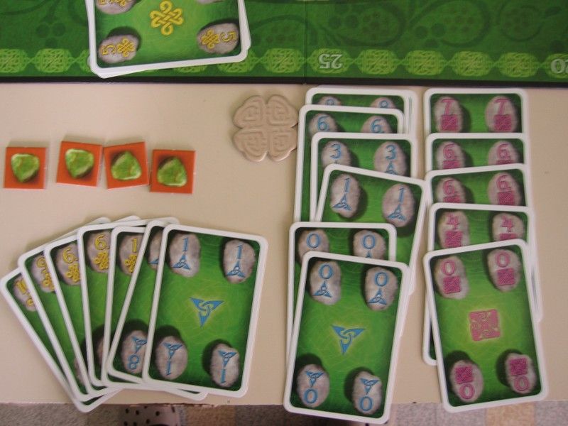 Mes séries de cartes, les pierres que j'ai récoltées et ma main finale.