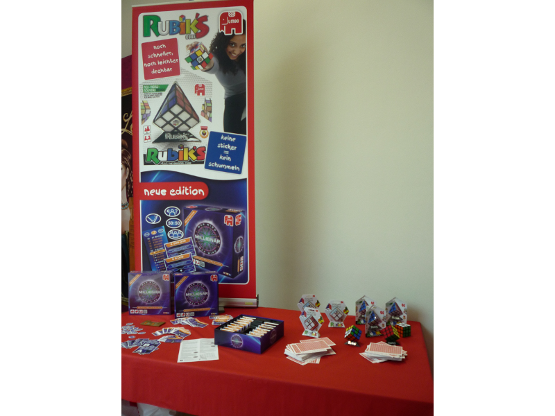 Le stand de Jumbo avec des Rubic's cube et le jeu basé sur le jeu TV "Le Millionaire".