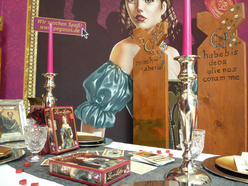 Le jeu mit à l'honneur par Pegasus Spiel est "Love Letter". Un superbe stand y était dédié...
