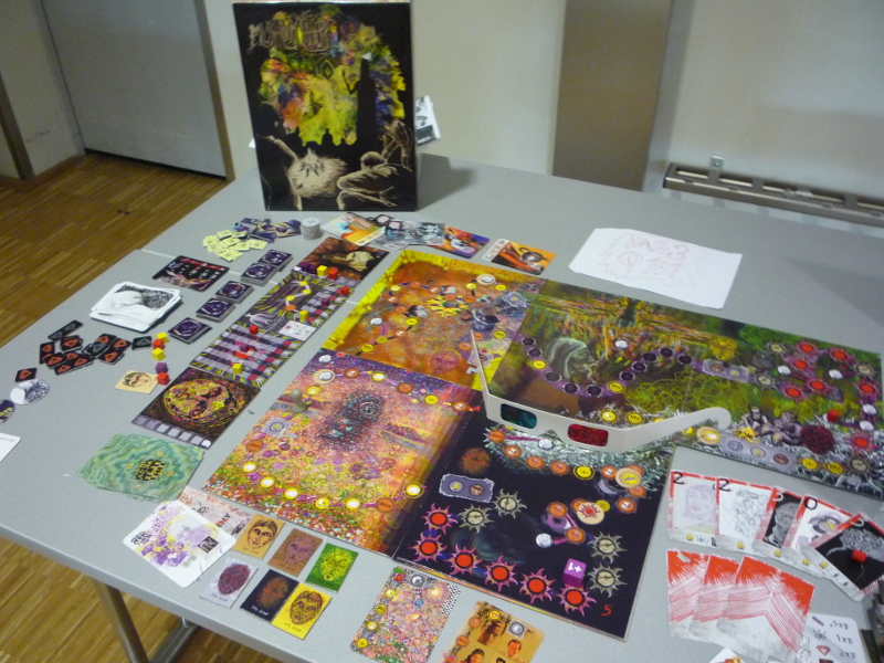 Le jeu n'était pas exposé, donc pas de photo du matos (et il n'y a pas beaucoup de place pour ouvrir la boîte soi-même ^^)