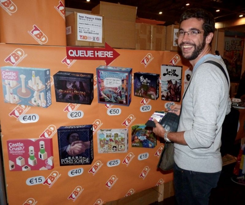 Ici Sly078 devant la boutique TBD qui pour son premier Essen craque pour son premier achat Ponzi Scheme (tout comme Bardatir).