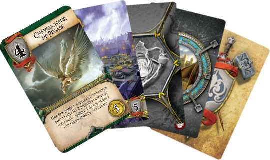 Les 2 unités suivantes ont des capacités dépensant de l'influence pour s'activer : le guerrier Darnati pourra détruire une unité adverse pour 1 influence ce qui est très puissant au vu de la facilité des Elfes à en obtenir et le chevaucheur de pégase permettra de révéler 2 cartes de son deck et d'en conserver une quelle qu'elle soit.
