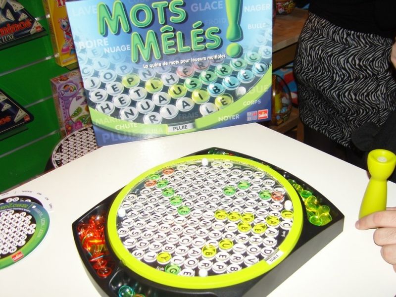 Mots mêlés porte bien son nom. Le jeu proposera plusieurs plaques circulaires, qu'on insère dans le jeu. Là, tous les joueurs recherchent un même mot ensemble. Celui qui le découvre met des jetons transparents à sa couleur sur le mot et on passe au mot suivant.