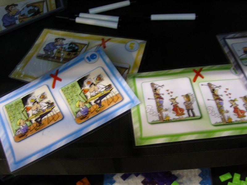 Là, les différences sont plus nombreuses : pas de texte sur les cartes et du mime ou de la pâte à modeler seulement.