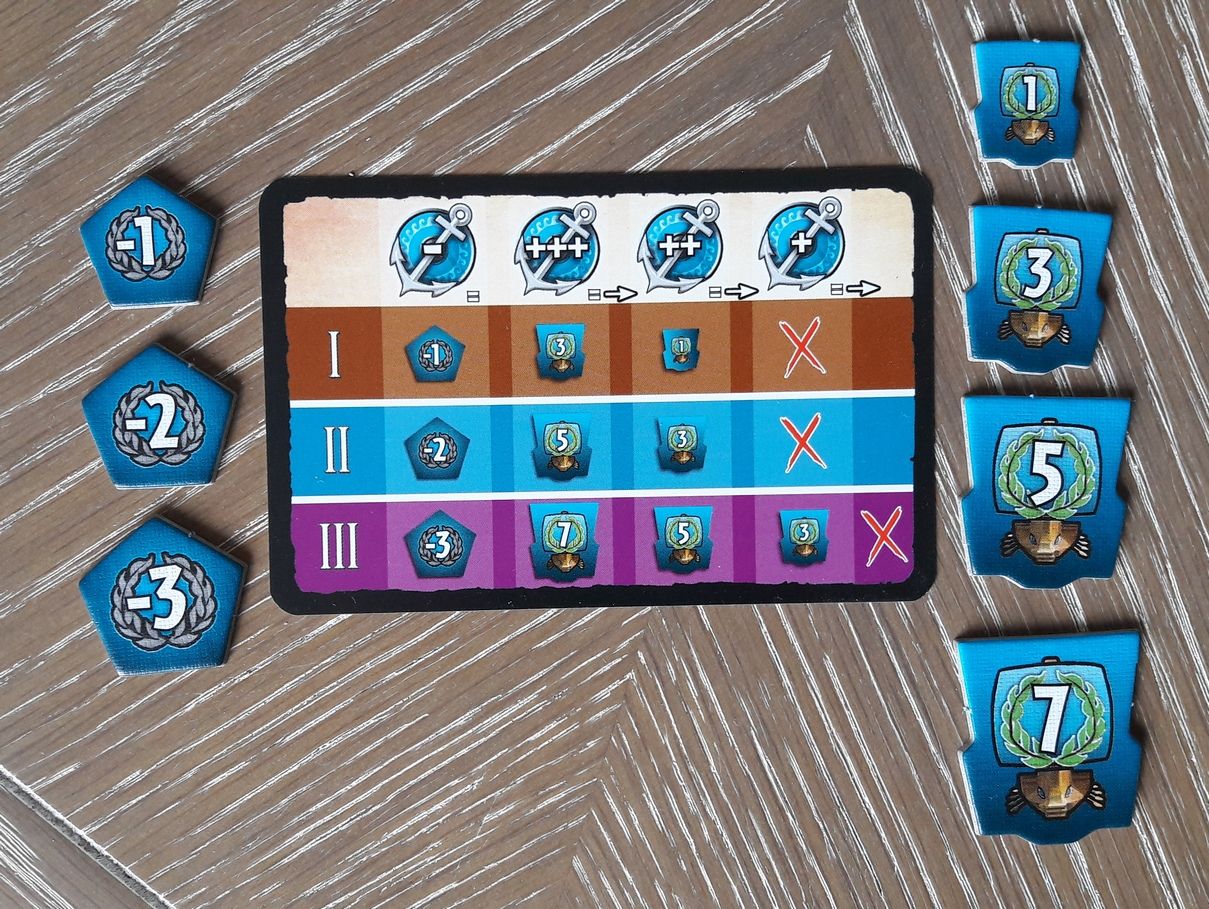 Au début de la partie les joueurs tirent une piste au hasard et cela peut influer fortement les stratégies car la construction de merveille permet de faire avancer le navire dans la colonne où le symbole se trouve.