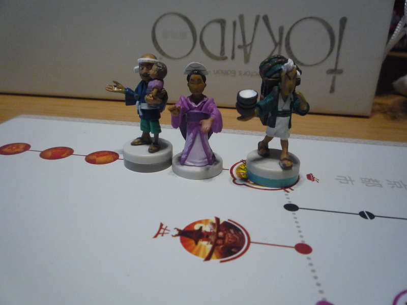 - un "wash effect" sur les parties que l'éditeur a voulu mettre en avant (il n'y a aucun effet sur les parties blanches et sur la peau). C'est un effet "subtil", afin de correspondre à l'état d'esprit de Tokaïdo et pour éviter que les figurines ne soient trop sombres.