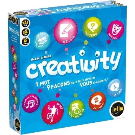 Pourquoi Creativity ? J'ai joué à des jeux d'ambiance de toutes sortes mais dans celui-là, vous pouvez faire de la pâte à modeler, faire deviner avec des fils de fer, dessiner, mimer, chanter des chansons, un mot, 2 mots, une question... et chaque joueur a le choix pour chacun des 5 mots qu'il doit faire deviner. Pour moi le meilleur jeu d'ambiance de création.