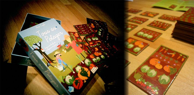 Tous au Potager est un jeu édité par Sweet November. Il fait parti de la collection Ballon Bleu qui comporte aussi les jeux : Tous au Poulailler et Tous à la Ferme. Ces trois jeux s'inscrivent dans une continuité car ils ont été créés par le même tandem auteur/illustrateur, à savoir : Anne Cayla et Pathat
