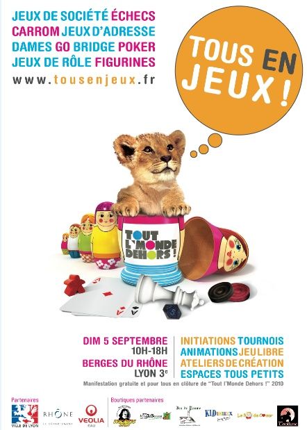 Dimanche 5 septembre 2010, 17 associations et clubs de jeux de la région Lyonnaise s'installent sur les berges du Rhône et invitent les promeneurs à une balade ludique. Au programme : animations de jeux de société modernes et classiques, tournois de jeux d'adresse, ateliers de création ludique et initiation aux jeux de rôle.