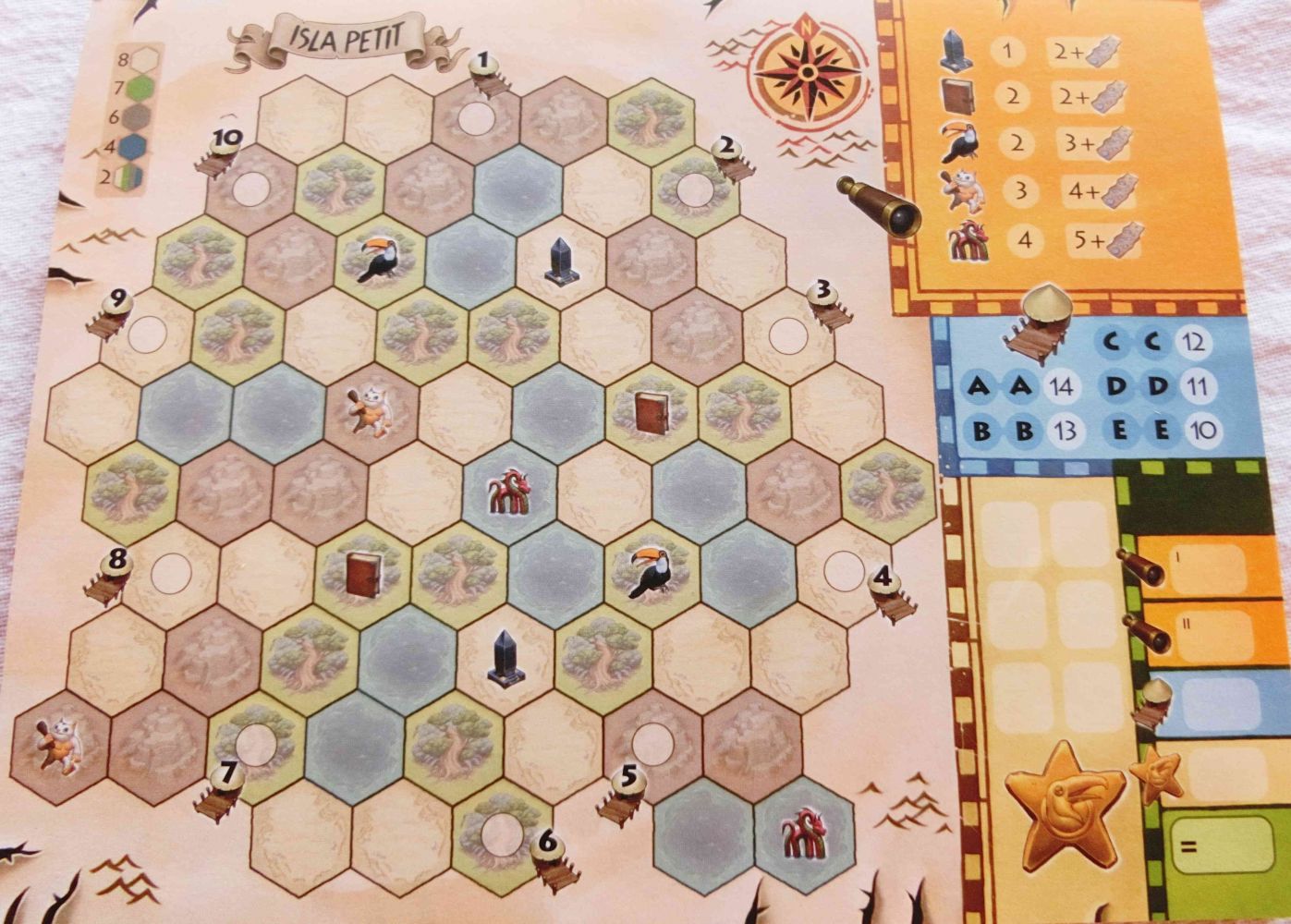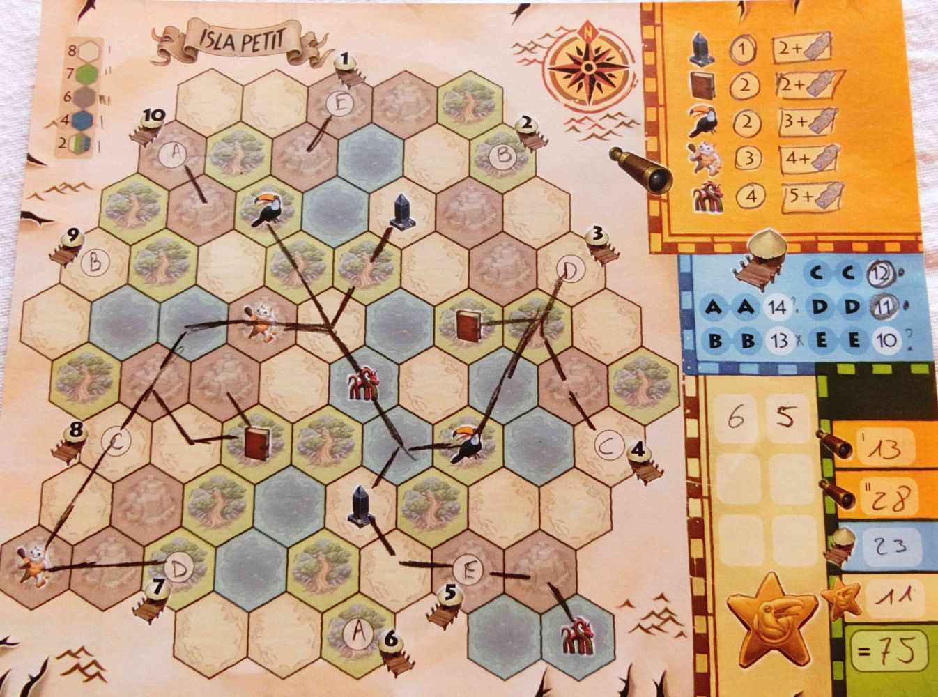 Au dos Isla Petit, on pourra trouver une autre carte Isla Grande. Elle est plus grande et donc vous jouerez 3 manches. Les curiosités seront donc comptées trois fois mais les objectifs et les liaisons entre les villes ne seront comptés qu'à la fin.