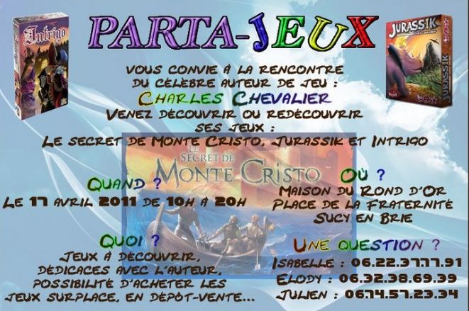 A Parta-Jeux, ça bouge régulièrement et pour perpétuer la tradition, l'association a décidé d'inviter un invité de marque en la personne de Charles Chevallier, l'auteur d'Intrigo (dont voici le Jedistest), mais aussi des récents Jurassik et Le secret de Monte Cristo.