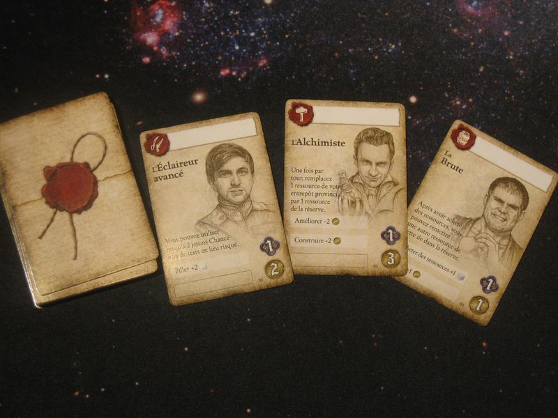 Voici trois types de conseillers. De ce que j'ai vu, toutes les cartes sont différentes. Je n'ai pas regardé en détail car je ne veux pas non plus être spoilé pour ma partie.