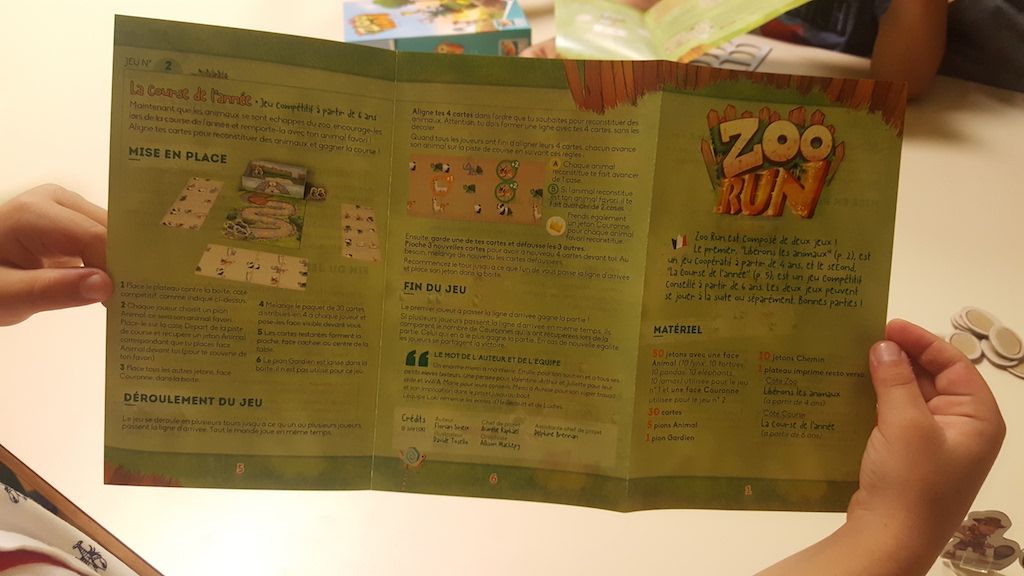 Zoo Run, comme c’est écrit sur la boite, s’adresse aux enfants à partir de 4 ans mais pas que ! Les deux modes de jeu proposés par l’auteur, Florian Siriex, donne une bonne rejouabilité au jeu.