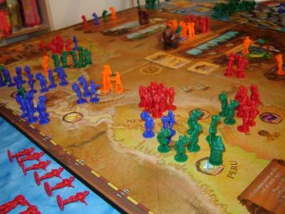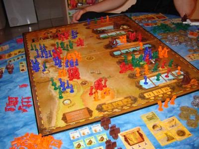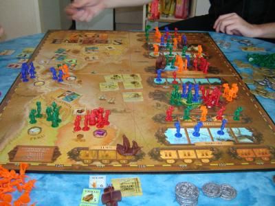 Retour à la maison : je fais découvrir Age Of empires III dont je maitrises les règles à la perfection (enfin, c'est ce que je croyais) et que nous jouons tous pour la première fois.