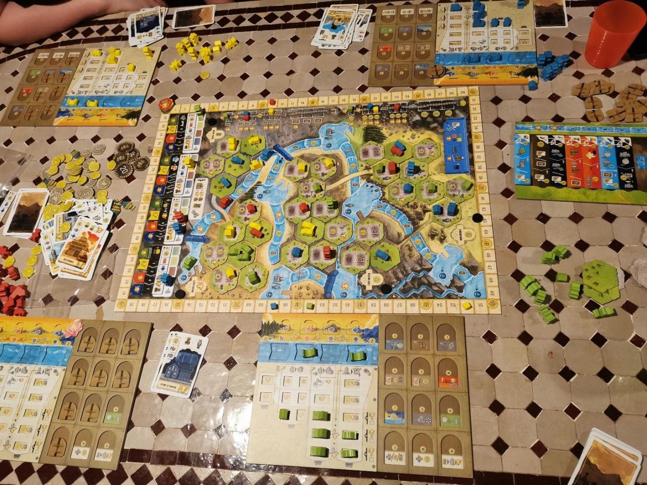Côté mécanique, je ne suis pas très fan de la pile d'actions qui est la base du jeu. Surtout à 4 joueurs, il peut arriver que certaines actions soient constamment choisies par les mêmes joueurs. Ce phénomène est accentué en fin de partie où les actions "exploration" et "bétail" deviennent bien moins intéressantes quand la carte est remplie.