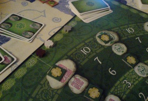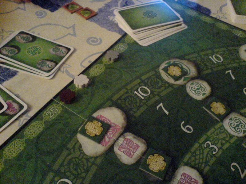 Je tenais de bonnes cartes en main et effrayais un peu mes adversaires... puis les cartes ont un peu tourné en ma défaveur sur la fin. Cédric s'est emparé assez vite des émeraudes et Loïc me devança de quelque longueur. Au final je n'ai pu en récurer qu'une seule, dommage !