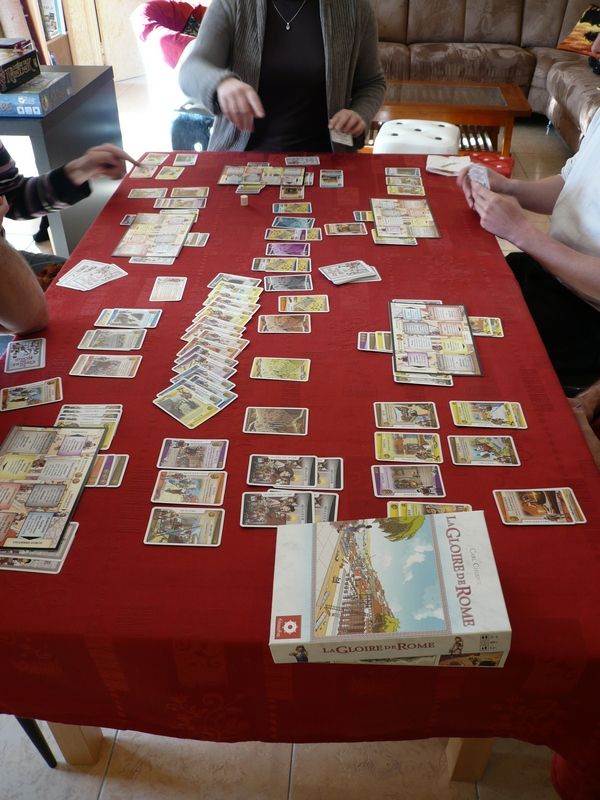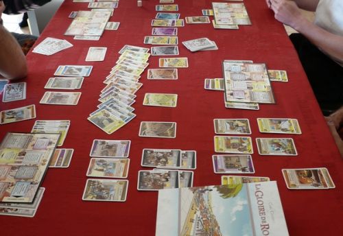 Une partie à 5 joueurs dont 2 découvraient, et un vrai plaisir à jouer dans cette lourde configuration ! Une table remplie de cartes...