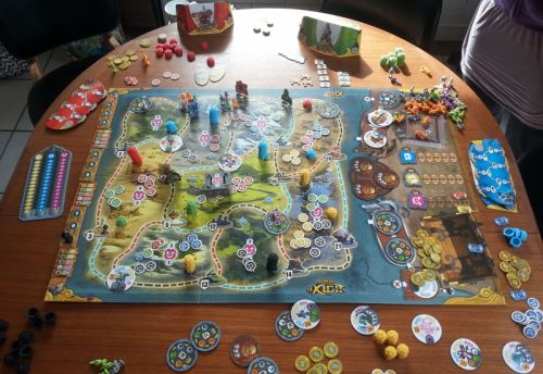 Première partie de ce jeu : dans une configuration à 5. On a joué la partie en 9 tours, petit cafouillage avec les cartes menaces et recrutement mais sinon partie assez fluide pour une première!