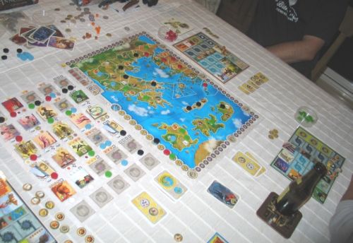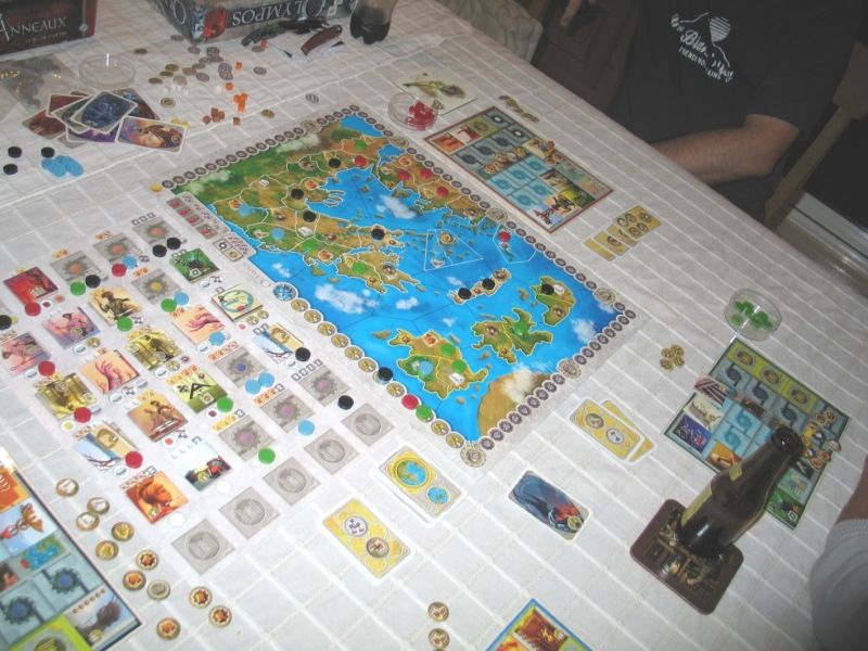 Titgarou: moi j'ai ciblé ma stratégie sur la conquête avec par exemple : la cavalerie, le rabais de coût d'envoi d'un nouveau pion sur la carte, la médecine (2 jetons en plus) et le bonus lié au nombre d'étoiles (je fini avec 3 étoiles en fin de partie en jouant en dernier ma dernière action grâce à une conquête d'une des étoiles à l'un de mes adversaires) et une épée très vite acquise pour l'attaque et freiner les ardeurs de mes voisins.