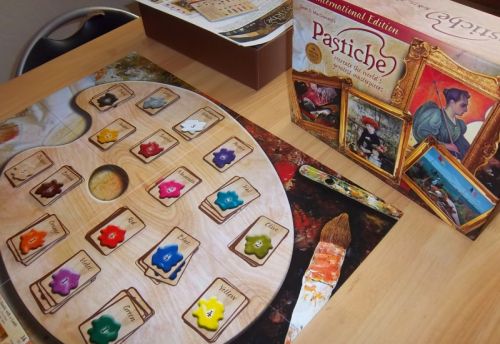 Je viens d’essayer « Pastiche », un jeu édité par Gryffon games, le même éditeur que The road to Canterbury.